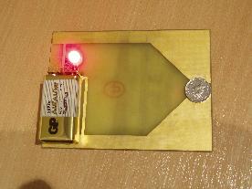 Unit 4F is about the difference between insulators and conductors. You can simply place an item to be tested across the contacts and see whether the LED lights up. Metal things such as coins, keys, and paperclips conduct.