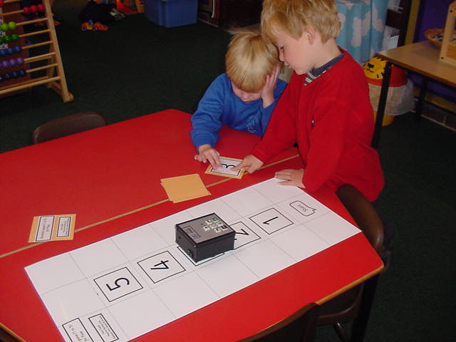 Making PIXIE work By pressing buttons you can make PIXIE pause or move forward, backward, left and right. Press Go to tell it to start a program. Press CM to make it forget its program. You can stop PIXIE urgently by pressing any button. Playing the game Shuffle the numeral cards and place them face down beside the play mat. Place PIXIE at start and switch on. Turn over the first card and program PIXIE to travel to that marker on the grid. Players continue to take turns at turning over cards and programming PIXIE. Support and Differentiation Children will already have experience of Numbers Game (1 to 3). As pupils become more accustomed to using PIXIE, they should be encouraged to talk about what they plan to do. If PIXIE fails to reach the correct grid reference help the children to analyse their programming error and try again. Always model and encourage the use of appropriate vocabulary. |