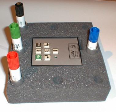 What you get What you get is a piece of foam that has been cut to fit closely over PIXIE. There is an extra cut-out to avoid the on/off switch. The foam has 8 holes punched in it for 8 alternative positions of the pens. You also get 4 aluminium tubes and 4 Berol pens. The tubes fit into whichever holes in the foam you want to use and the pens slide up and down in the tubes. You might start off with just one pen at the front or back of PIXIE and work up to all four. I do not recommend using more than 4 pens at a time.
