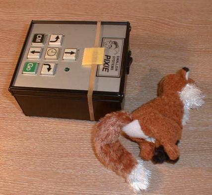 I was at a exhibition this year next to Puppets by Post. They have ranges of small finger puppets that seemed worth trying with PIXIE and PIP The puppets have a hole in the base so that they can sit on a finger. We wanted to find a way of fitting them to the robot that did not raise too many eyebrows, so we tried Velcro. Velco is available as self-adhesive squares of both the hook type and the loop type. All we did was to take two of the hook squares and stick them back to back with an elastic band between them. Each puppet has a square of loop Velcro stuck to its base. The elastic band goes round the robot (PIP or PIXIE) with the Velcro at the top. You can then rapidly attach any of the puppets to it. There are several ranges of these small puppets. I like the European wildlife set, but there are a large number of sets including story-telling ones. Contact Puppets by Post for details. |