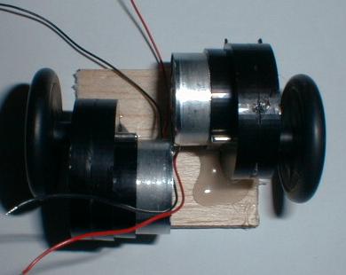 The drive train assemblies are attached to the top chassis plate with hot melt glue. Be careful not to get glue on the wheels or your fingers!