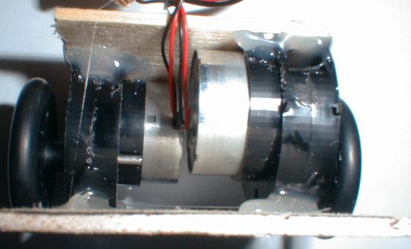 The bottom plate runs forward from just behind the gearbox. You can just see where the back of the plate is behind the wheel. The grain runs from the front to the back. It is held to the gearboxes with hot melt glue.