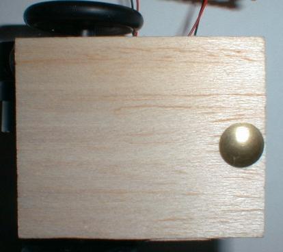 The chassis is made out of balsa wood and hot melt glue. The top chassis plate is made out of 2.5 mm thick balsa wood. It is 50 mm by 45 mm with the grain running parallel to the 50 mm side. I used a scalpel to cut the balsa wood.