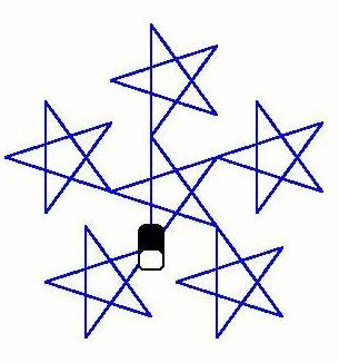 The function keys are a very powerful extension to the capabilities of PIP. With the graphics possibilities of the simulator, sometimes you want to write very complex programs. For examples, you might want to produce a "star of stars" graphic like this: