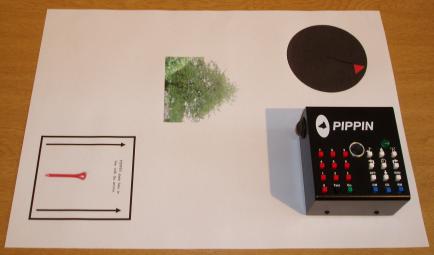 This is a simple application for printing on an A3 sheet. The microworld is a golf hole. There is a place for PIPPIN to start (the tee), a target (the hole) and, perhaps, one or more obstacles (trees). The student has to program PIPPIN to go from the tee to the hole avoiding the obstacles. The score is the number of white keys pressed plus the number of times Go is pressed.