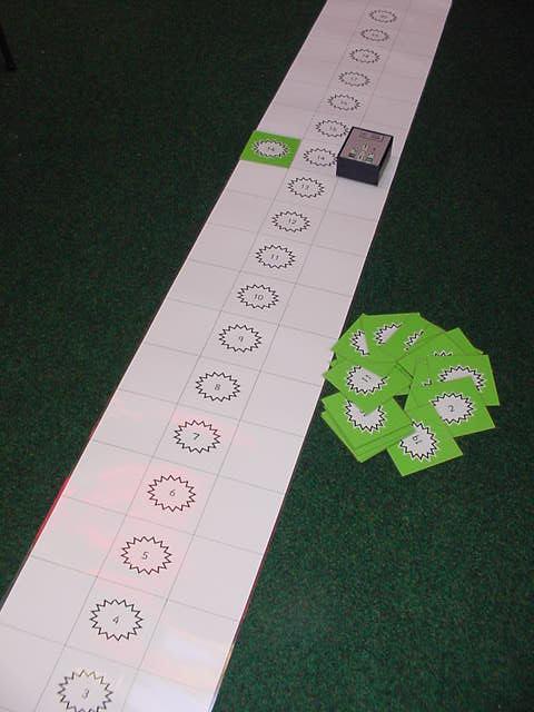 Making PIXIE work By pressing buttons you can make PIXIE pause or move forward, backward, left and right. Press Go to tell it to start a program. Press CM to make it forget its program. You can stop PIXIE urgently by pressing any button. PIXIE may be made to travel directly over the numerals or alongside them. Shuffle the numeral cards and place them face down beside the play mat. PIXIE may start at any grid reference. Turn over the first card and program PIXIE to travel to that marker on the grid. Players continue to take turns at turning over cards and programming PIXIE. Children will already have experience of smaller microworlds for PIXIE. This grid is suitable for children who are already confident when counting to 10, and who are now dealing with numbers to 20. Pupils should be encouraged to talk about what they plan to do before they begin to tap in their program. Practitioners may wish to scribe the program onto a laminated record card. If PIXIE fails to reach the correct grid reference help the children to analyse their programming error and try again. Always model and encourage the use of appropriate vocabulary. Have you sequenced numbers with the number fairy? |