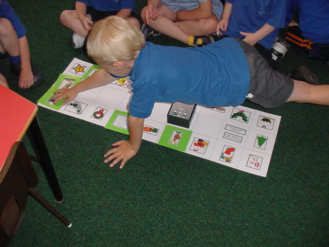 Making PIXIE work By pressing buttons you can make PIXIE pause or move forward, backward, left and right. Press Go to tell it to start a program. Press CM to make it forget its program. You can stop PIXIE urgently by pressing any button. Playing the game This is a game for children who have previously programmed PIXIE to move around an ordered two-dimensional grid or microworld. Players take turns to select a card from the top of the pile and describe it to the other players. Pupils should be encouraged to talk about their programming in the usual way and then send PIXIE to the matching grid reference. Check that pupils are remembering to press CM each time a new program is entered. As pupils gain greater confidence, practitioners may begin to scribe, recording the planned program onto a laminated record card. If this is read back together, there will be an opportunity to check if the new program is likely to be successful. Allow time for reprogramming if necessary and encourage the children to work together. Practitioners may suggest a program to each new player, asking them to predict where PIXIE will end its journey. |