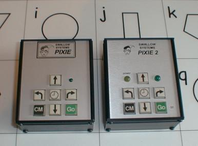 PIXIE Mark 2 is an improved version of the original. It was developed as a result of one of the components for PIXIE becoming obsolete and forcing a redesign. While we had the opportunity, we upgraded PIXIE in the light of technological improvements and improved insights from years of using the original version. Much of the outside is the same. The casing is the same size and made of the same pieces except where holes have been deleted, added or moved to accommodate the new features. The keyboard is the same. The key functions are unaltered except for Go; see below. The charger is the same and works with original and new versions interchangeably. All of the existing applications are compatible with the new version. Mark 2 has no ON/OFF switch. The original was prone to being turned on accidentally. If PIXIE was stored like this for long periods the battery would deteriorate. More annoying from our point of view is that when transporting PIXIE to and from demonstrations in the car, PIXIE could be accidentally turned on by putting something on top of it and then it reminds you to turn it off every 3 minutes until you can get off the motorway. Mark 2 PIXIEs grumble 3 times and then turn themselves off. Mark 2 is switched on by pressing the Go button. It is switched off by pressing and holding the Go button for more than 5 seconds. Mark 2 turns itself off when the battery is flat. Mark 2 has 2 LEDs on top. The extra one shows that it is on as it has no switch. Mark 2 is louder. Mark 2 LEDs are bigger. Mark 2 "clicks" for each unit of movement or pause. This is to make it easier for visually impaired users to track its position while it is running a program. Mark 2 is quicker for forward and backward movements. It runs at about 11 centimetres per second versus 8. This is to reduce the time taken for longer runs and reduce the "boredom factor" for complicated programs. Turning speed is about the same as the longest normal turn is 4 units. Mark 2 can hold more than twice the size of program. Mark 2 is a little more accurate. Mark 2 is about 100 grams lighter. The printing on the top of a Mark 2 PIXIE is silk screened on instead of using a label. |