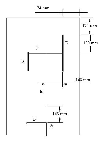 A wall follower doesn't need much in the way of a test track. However, it is worth making sure that all the possible "nasties" are present. Here is a design for a board that I think has all the problems.
