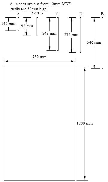 The course is made up of these parts. Parts A,B,C,D and E are painted gloss white with gloss red tops. The base plate is painted black using blackboard paint. The recommended matt black paint is either International or Signpost brand matt black blackboard paint which is easily and cheaply available in most DIY superstores. Many DIY superstores will cut the pieces to size for you.