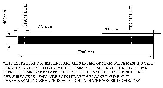There will be a gap of at least 375mm between the edges of the two lanes. Any mouse touching any part of the other lane will be disqualified.