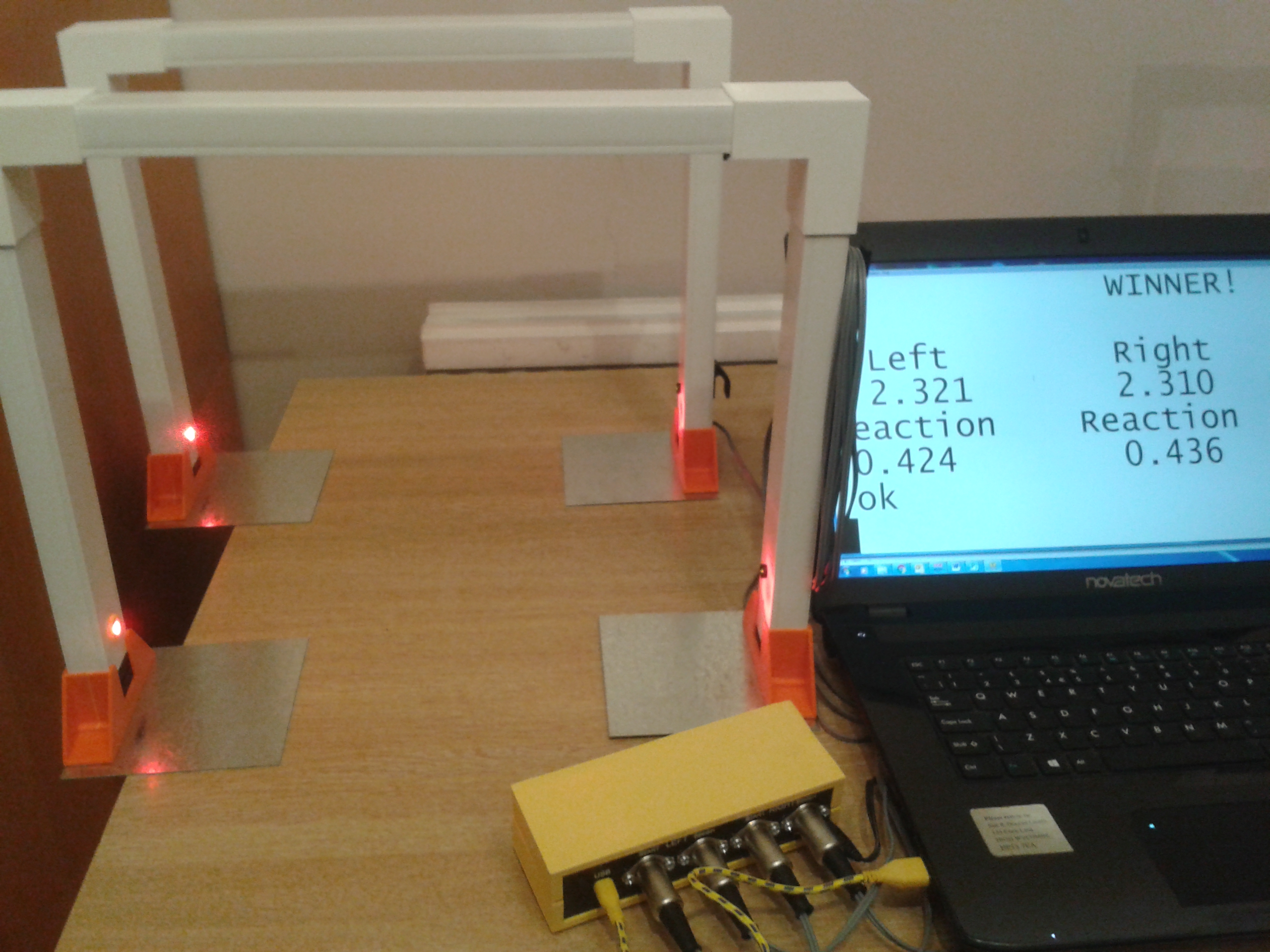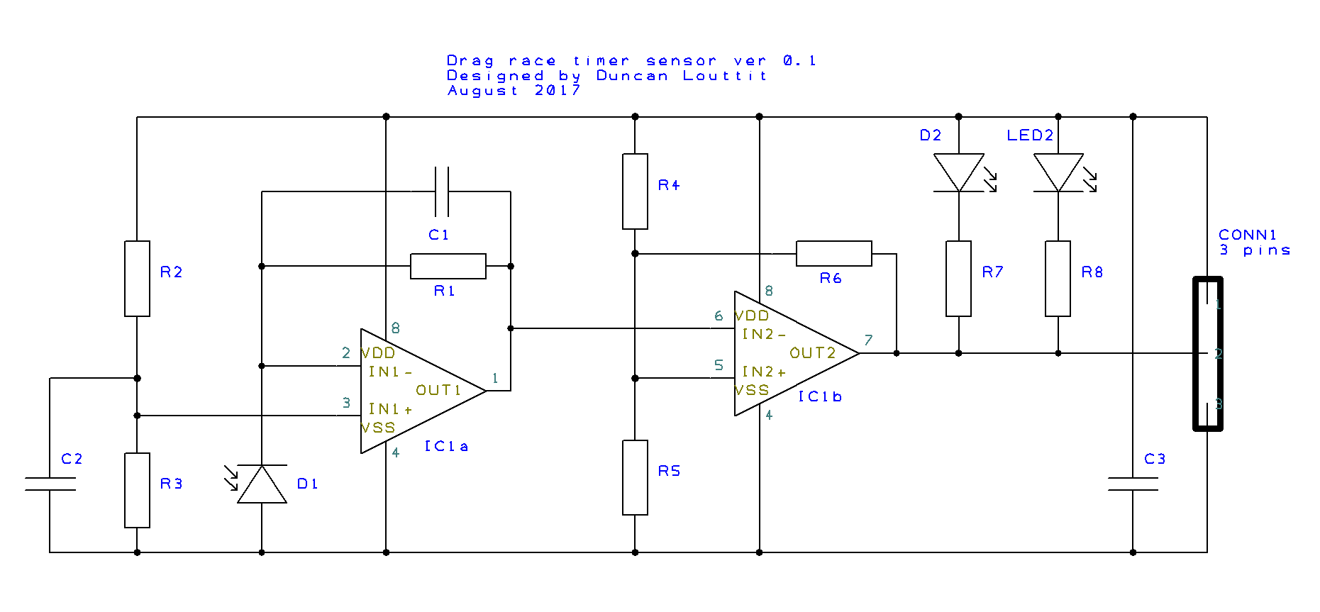 When you organise a proper competition you need reasonable timing equipment to avoid dispute. Hand timing relies on a certain amount of trust and goodwill and this can be difficult in the "heat of battle". For development, I use the facilities of the mouse itself to see how long it took to finish the challenge; it's a lot easier and less effort. For those who need to run a competition, here are some notes on the timing gear we recently built. This information is supplied "as is". I take no responsibility for its completeness or accuracy and I take no responsibility for any use you make of it. It has not been prepared for professional presentation.